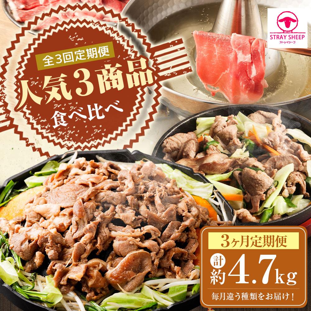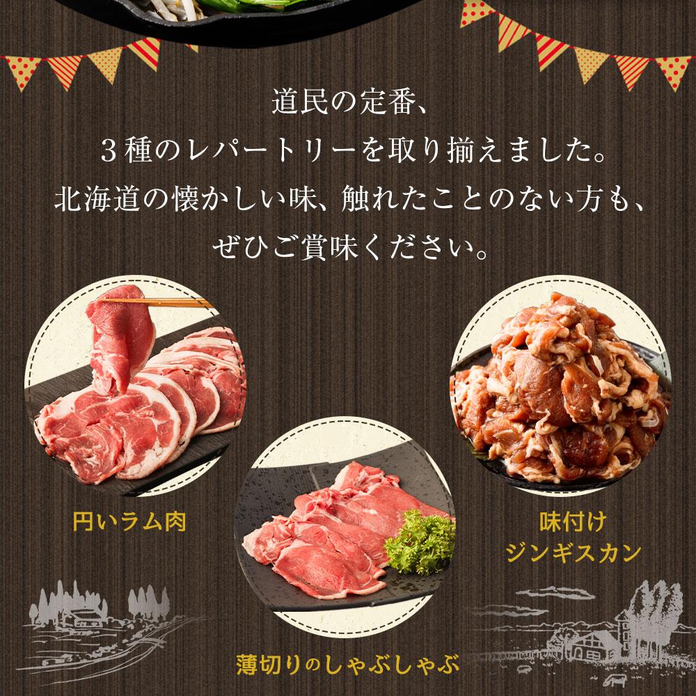 - 【全3回定期便/3ヵ月】人気3商品食べ比べ ラムロール肉スライス・ラムしゃぶしゃぶ・味付けジンギスカン