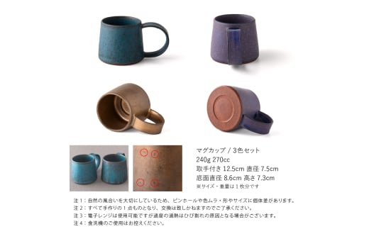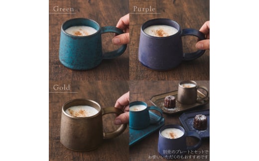 - 【美濃焼】 恩田陽子 コーヒーマグカップ 小 250ml 3色各1点 計3点セット グリーン ゴールド パープル 瑞浪市 / JS企画 ティーカップ マグ マグカップ コップ セット [AZAZ035]