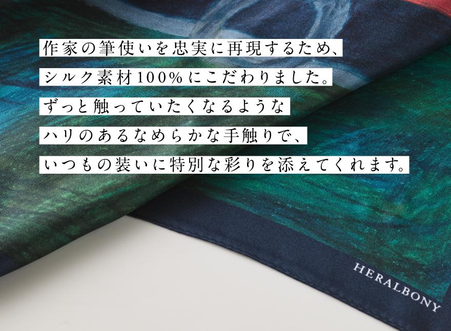 - ヘラルボニー シルクスカーフ Hiroshi Yoshida 「ヴェネチアのフルーツ船」 スカーフ ファッション シルク ギフト 大判 日本製 HERALBONY 岩手県 盛岡市