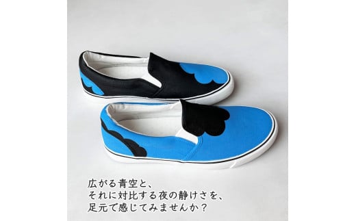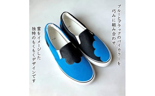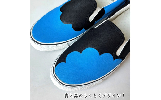 - 手描きスニーカー「MOKUMOKU BB 黒青」 スリッポン ワイズ 2E 24.5cm 【受注制作】