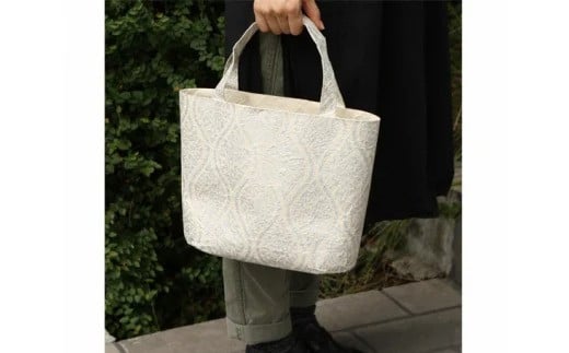 【ふるさと納税】ドット柄がかわいい!バッグンナウンのミニトートバッグ(エクリュー)