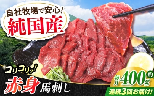 【全3回定期便】『純国産』熊本の味 コリコリ 赤身 馬刺し 計約400g(約200g×2パック)【有限会社 九州食肉産業】 馬刺 馬肉 桜肉 馬 うま ウマ ヘルシー 国産 新鮮 赤身 上質 小分け セット 大容量 低カロリー 高タンパク 冷凍 生食 生肉 ギフト 贈答用 食品 熊本県 合志 合志市 [AYCN131]