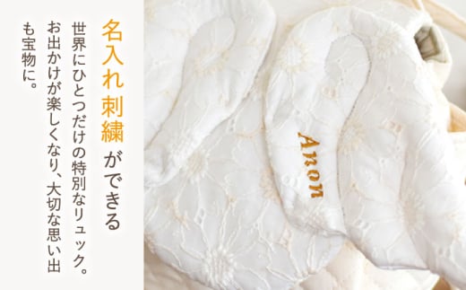 【オフ白×ブロンズ】【名入れ可能!】レース素材 天使の羽根 ベビーリュック【coco plus an factory】[OCR071]