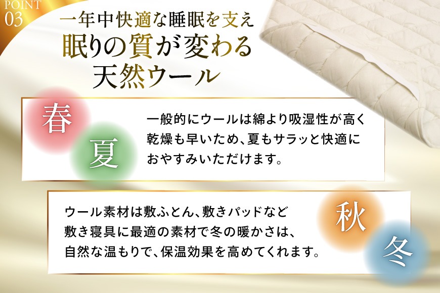 プレミアム フランスウール ベットパッド 防縮加工 ダブル (140×198cm) ウォッシャブル対応 [インテリアやない 福岡県 筑紫野市 21761338] ベッドパッド ウール 寝具