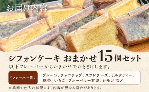 地元素材にこだわったシフォンケーキ 15個セット フレーバー おまかせ プレーン チョコ スフレチーズ ミルクティー 抹茶 いちご ブルーベリー 甘夏 レモン 国産 こだわり シフォン ケーキ お菓子 おやつ 田原市 渥美半島