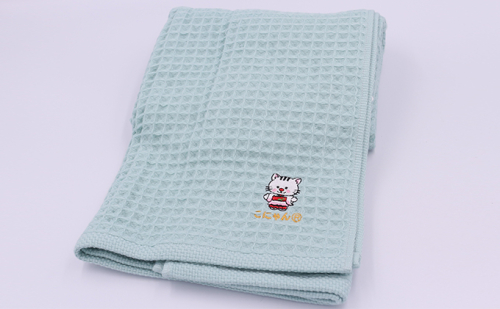 こにゃんワッフル地バスタオル【ブルー色】 日用品