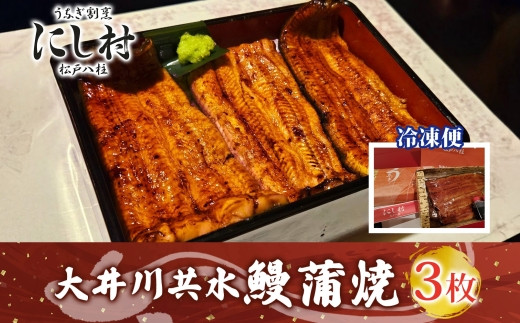 - 幻の鰻 大井川共水鰻蒲焼 3尾 ウナギ 鰻 国産 山椒 タレ たれ 養殖 大井川 共水うなぎ ブランド 土用 丑の日 蒲焼き 熟練の技 冷凍 うなぎ割烹 にし村 お取り寄せ 贈り物 贈答用 ギフト ご馳走 お祝い 送料無料 千葉県 松戸市
