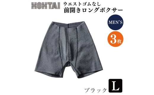 - 包帯パンツ 前開きロングボクサー ウエストゴムなし 【 枚数 : 3枚 、 サイズ : L 、 カラー : ブラック 】 下着 アンダーウェア 肌着 パンツ ショーツ スポーツ ゴルフ トレッキング 通気性 伸縮性 日用品 ギフト プレゼント 贈答 送料無料 徳島県 吉野川市