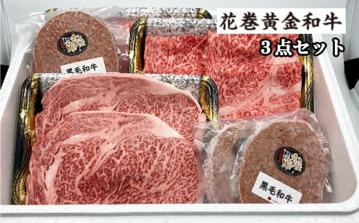 - うしちゃんの花巻黄金和牛ギフトC 贅沢3点セット【991】
