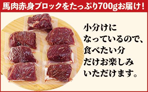 馬肉 赤身ブロック 700g [甘い馬刺し専用醤油付き] 加熱調理済みで安心安全!低温加熱で甘みと旨味がUP! - 肉 馬肉 ブロック 赤身 加熱加工 おかず おつまみ 低カロリー 高たんぱく タレ付き 小分け 冷凍 熊本県 甲佐町【価格改定XX】