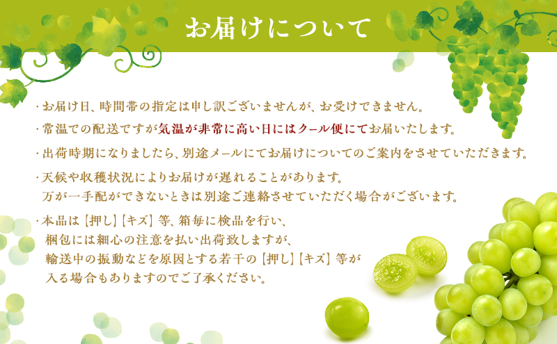 【2026年9月~発送】ぶどう シャインマスカット + おまかせ2種 約1.5kg(3?4房)山ノ内町産 ブドウ 葡萄 マスカット