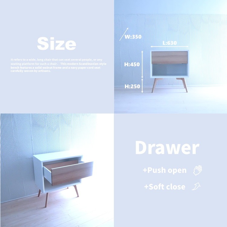木製 サイドボード キャビネット ナイトテーブル (天然木 タモ) ホワイト BOX:M/LEG:M/1段