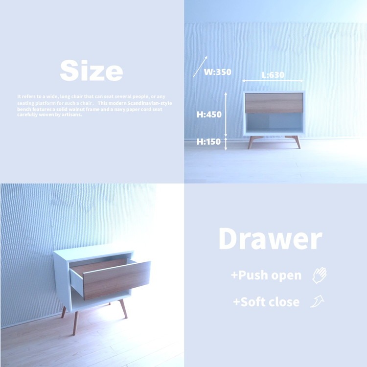 - 木製 サイドボード キャビネット ナイトテーブル (天然木 タモ) ホワイト BOX:M/LEG:S/1段
