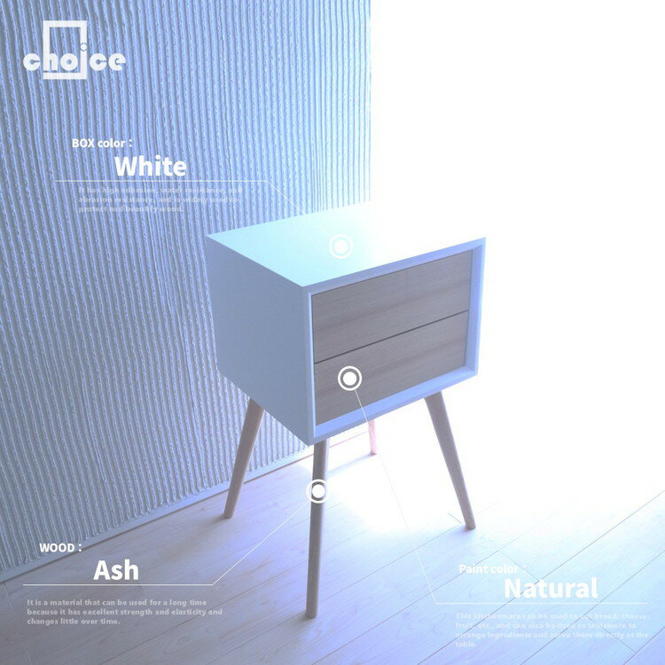 【ふるさと納税】木製 サイドボード キャビネット ナイトテーブル (天然木 タモ) ホワイト BOX:S/LEG:M/2段