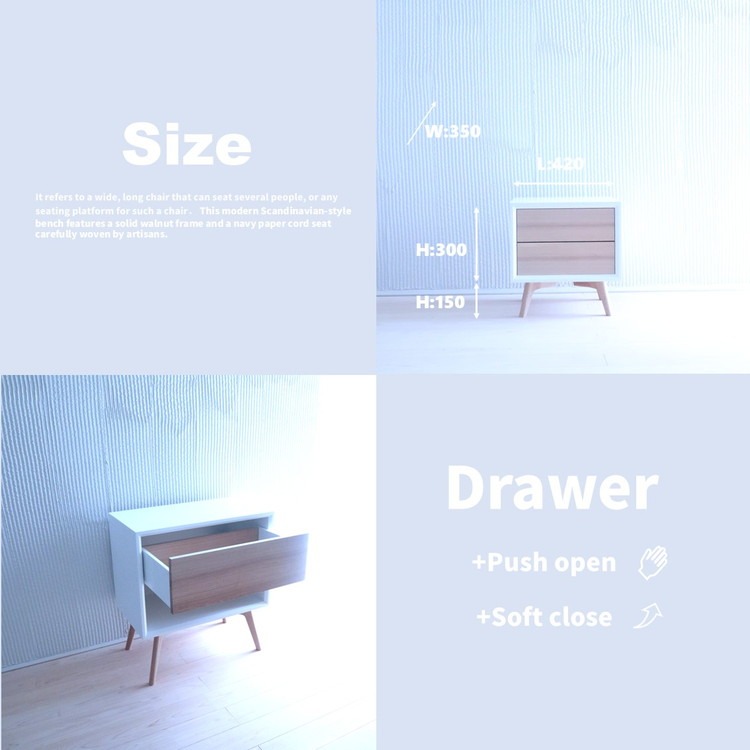- 木製 サイドボード キャビネット ナイトテーブル (天然木 タモ) ホワイト BOX:S/LEG:S/2段