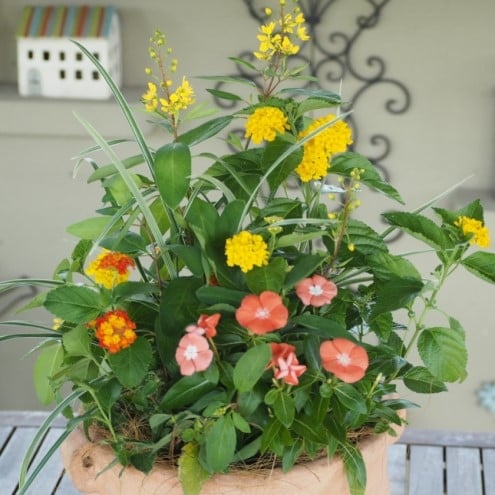 - 植物 寄せ植え 季節のお花 黄色 オレンジ系 つぼ丸型 25cm ガーデニング 花 配送不可:北海道、沖縄、離島