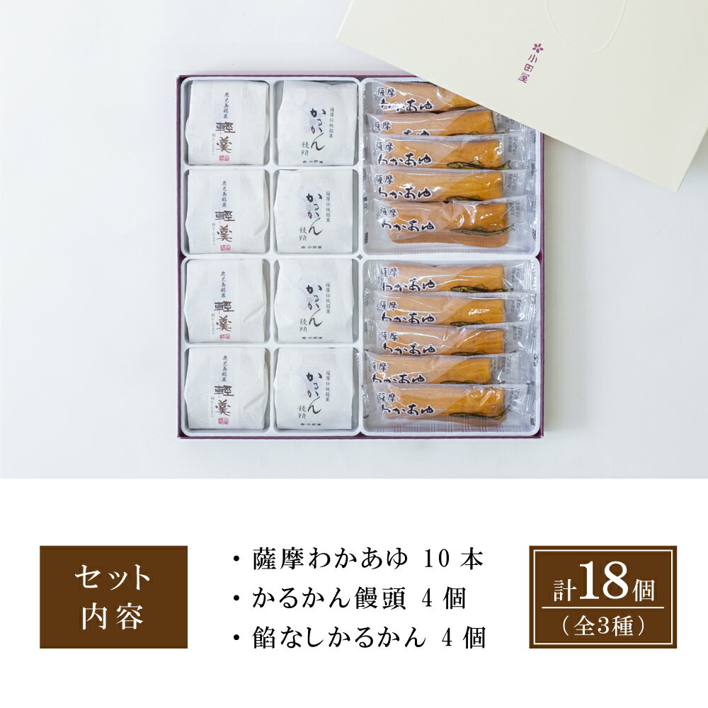 - 【ふるさと納税】【創業嘉永2年の老舗】小田屋のかるかん・わかあゆ詰合せ 3種(計18個)薩摩わかあゆ かるかん饅頭 餡なしかるかん 和菓子 お菓子の小田屋 送料無料 ギフト