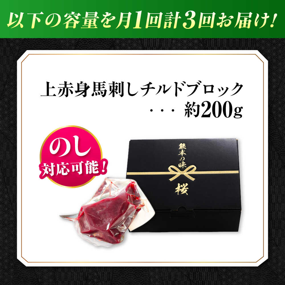 【ふるさと納税】【全3回定期便】『純国産』熊本の味 上赤身 馬刺し 約200g ブロック チルド 冷蔵 【有限会社 九州食肉産業】[AYCN039] 馬刺し 馬肉 馬 うま ウマ ヘルシー 国産 上赤身 赤身 大容量 低カロリー 冷凍 ギフト 贈答用 食品 合志 合志市