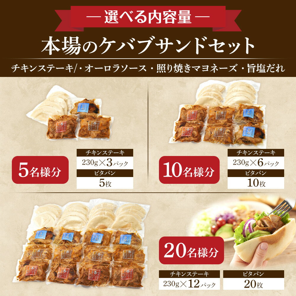 - 【ふるさと納税】【選べる容量】ケバブサンドセット 約5名~20名分 チキンステーキ 3~12食・ピタパン 5~20枚 肉料理 鶏肉 温めるだけ 惣菜 お手軽 簡単 ギフト 贈り物 | 白浜町 ケバブサンド ケバブチキン 惣菜セット 簡単調理 ホームパーティー ふるさと納税