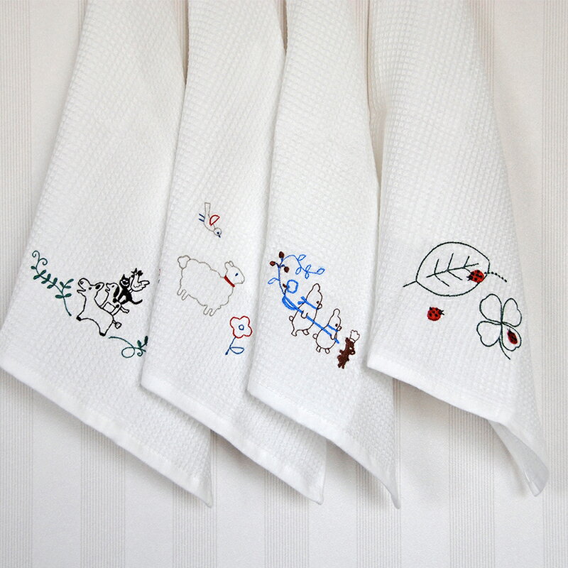 - 【ふるさと納税】シンジカトウ「ふきぴか キッチンタオル(刺繍)」セット ※ ハンドタオル 薄手 ワッフル ホワイト 吸水力 抗菌