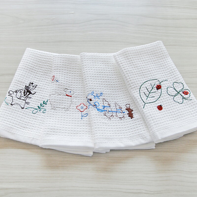 【ふるさと納税】シンジカトウ「ふきぴか キッチンタオル(刺繍)」セット ※ ハンドタオル 薄手 ワッフル ホワイト 吸水力 抗菌