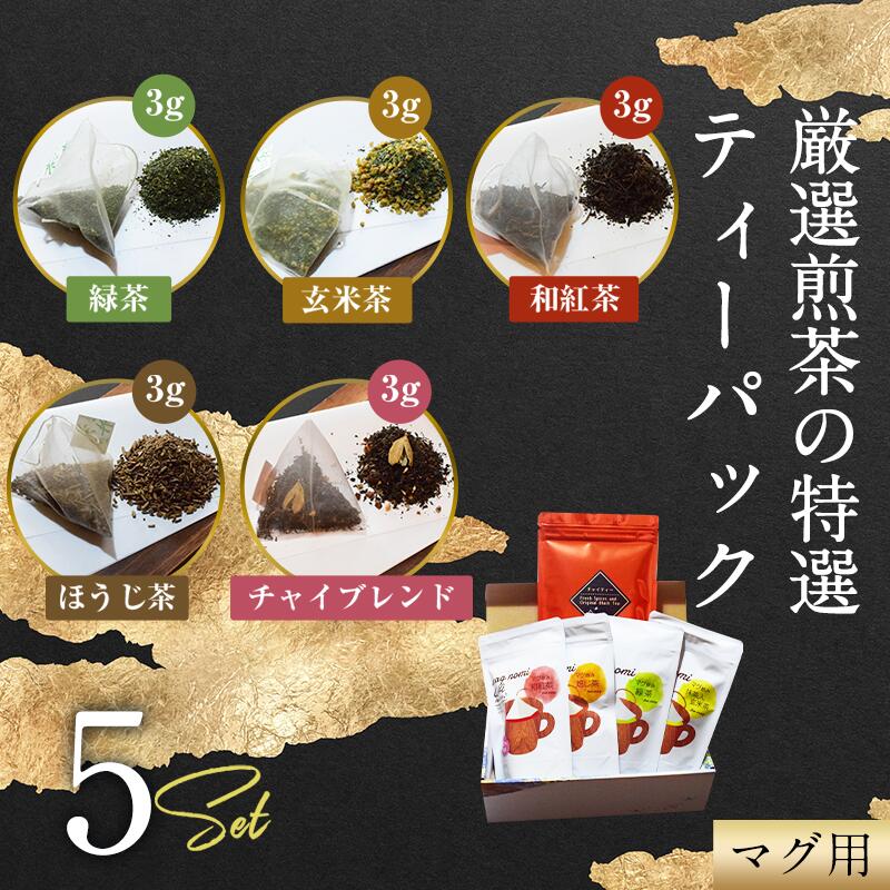 - 【ふるさと納税】 特選 ティーパック マグ用 5種×各1袋 セット 各20個入 ほうじ茶のみ12個入 緑茶 玄米茶 ほうじ茶 和紅茶 チャイブレンド ティーバッグ 影山製茶店 お手軽 芳醇 ティータイム おもてなし リラックス 手土産 富士市 [sf001-312]