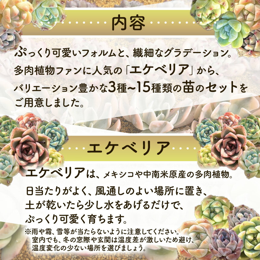 - 【ふるさと納税】多肉植物 名札付 おまかせ エケベリア 3苗~15苗| 選べる容量 多肉 植物 国産苗 抜き苗 初心者向け 育てやすい 観葉植物 インテリア プレゼント ギフト おしゃれ 彩り グラデーション 丈夫 簡単ケア おうち時間 癒し 栃木県 下野市