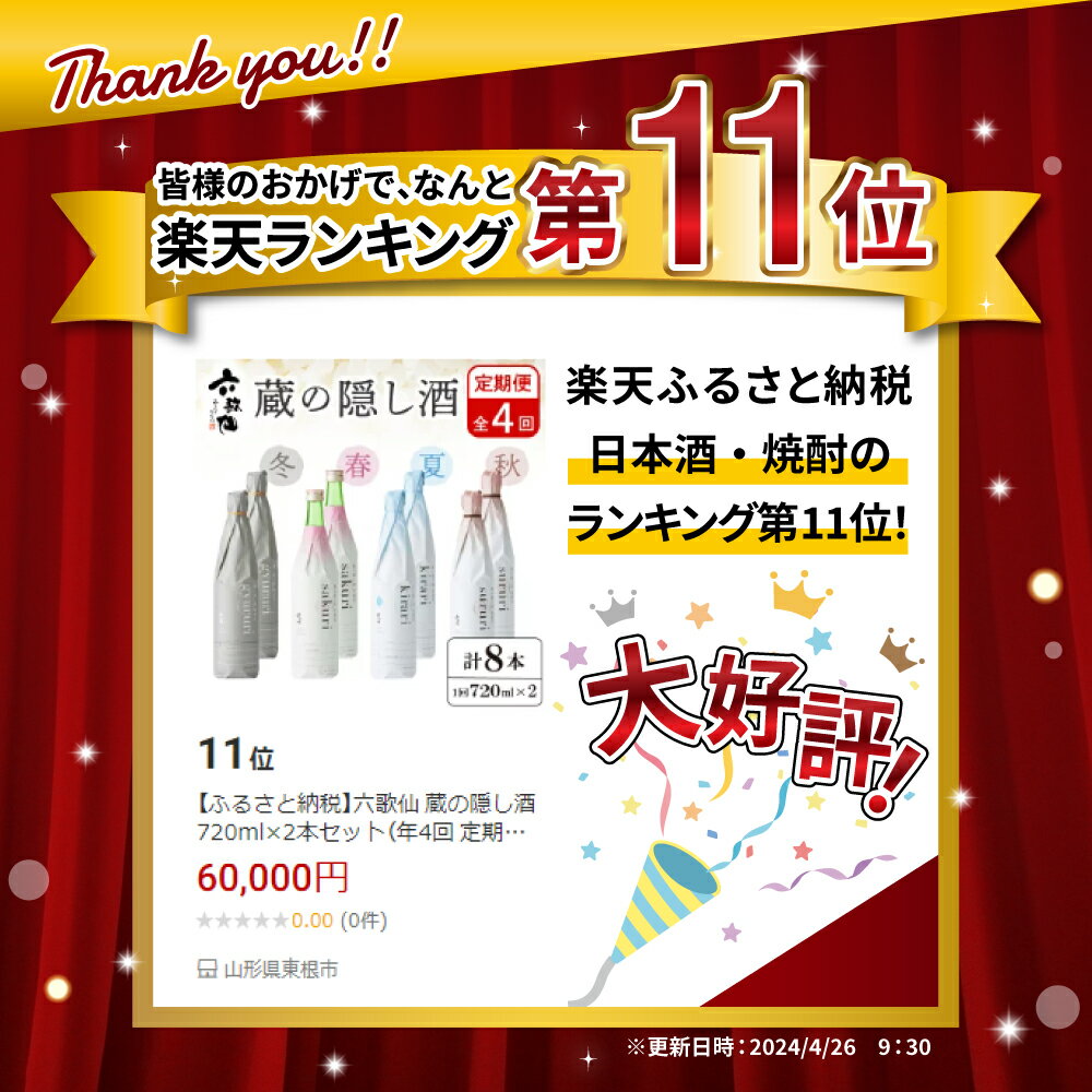 - 【ふるさと納税】六歌仙 蔵の隠し酒 720ml×2本セット(年4回 定期便) 日本酒セット 純米吟醸 年4回 定期便 酒 お酒 日本酒 お楽しみ