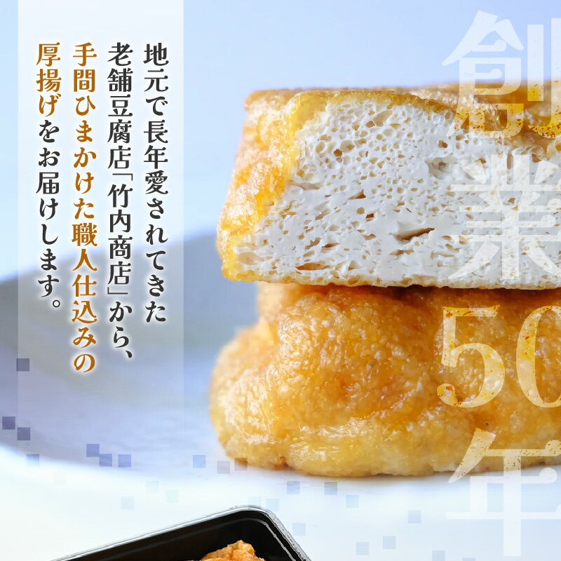 【ふるさと納税】老舗豆腐屋 / 竹内商店【三代目竹内】 こだわりの厚揚げ6枚セット 3段手揚げ法が決め手! 【選べる発送月】【お揚げ 油あげ 手作り 遺伝子組み換えでない 大豆 肉厚 おかず 人気 惣菜 あぶら揚げ 厚揚げ 贈答 ギフト お礼 贈り物】
