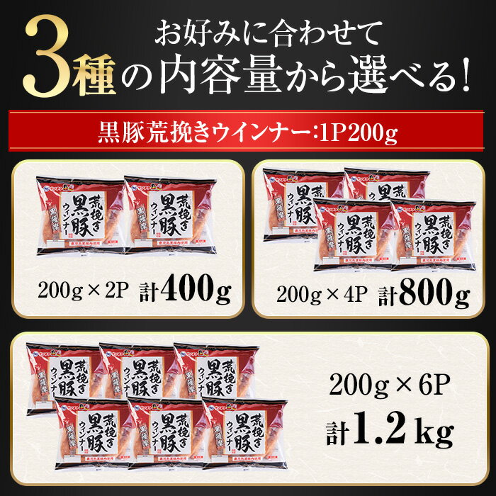 【ふるさと納税】<内容量が選べる>黒豚荒挽きウインナー(計400g~1.2kg・200g×2P~6P) 鹿児島県産 豚肉 黒豚 国産 ウインナー ソーセージ おかず 弁当 BBQ 朝食 夕食 キャンプ 加工品 小分け【ナンチク】