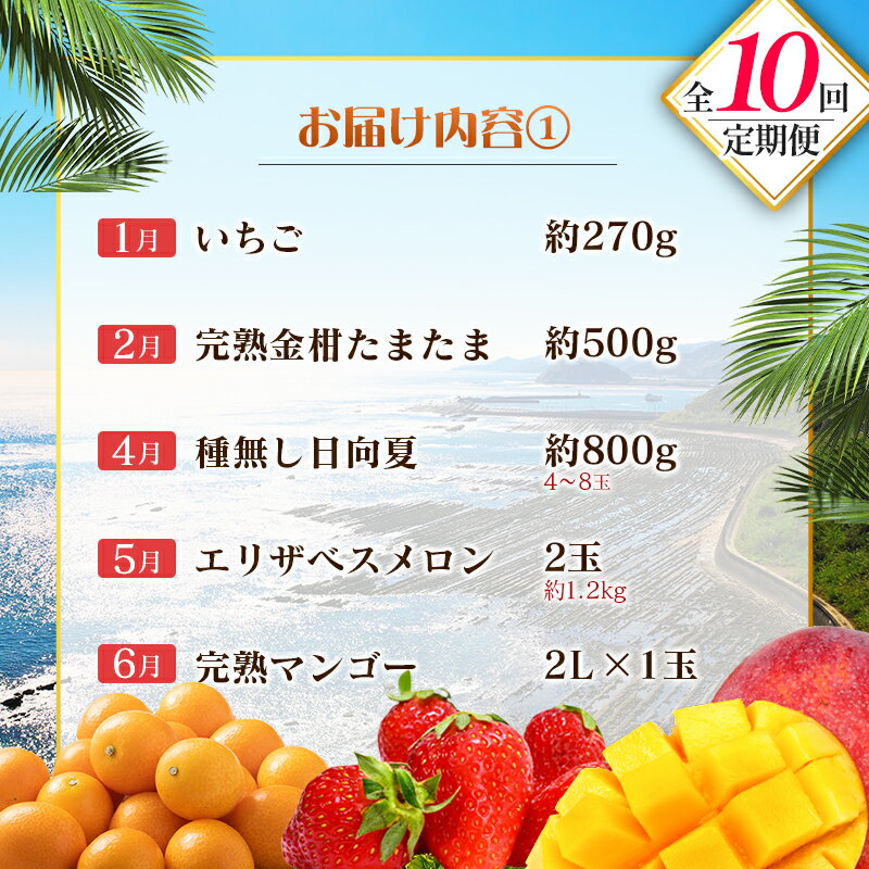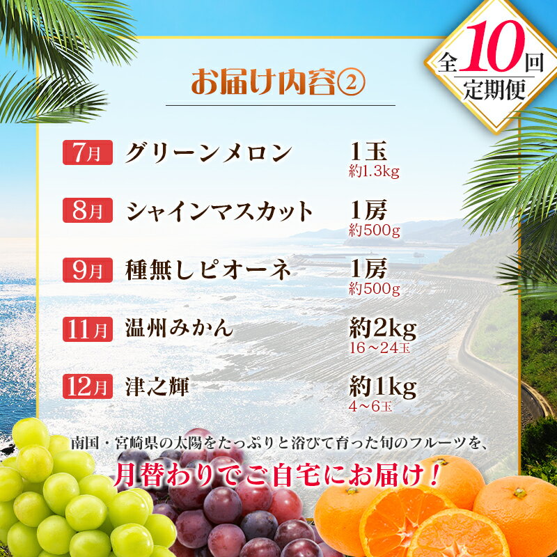 - 【ふるさと納税】【10回定期便】旬 人気 フルーツ 南国宮崎産 マンゴー 金柑たまたま シャインマスカット ピオーネ いちご みかん 日向夏 メロン 柑橘 きんかん ぶどう 果物 詰め合わせ 宮崎県 九州<E-3コース M700>