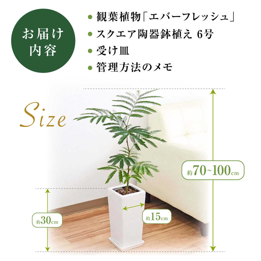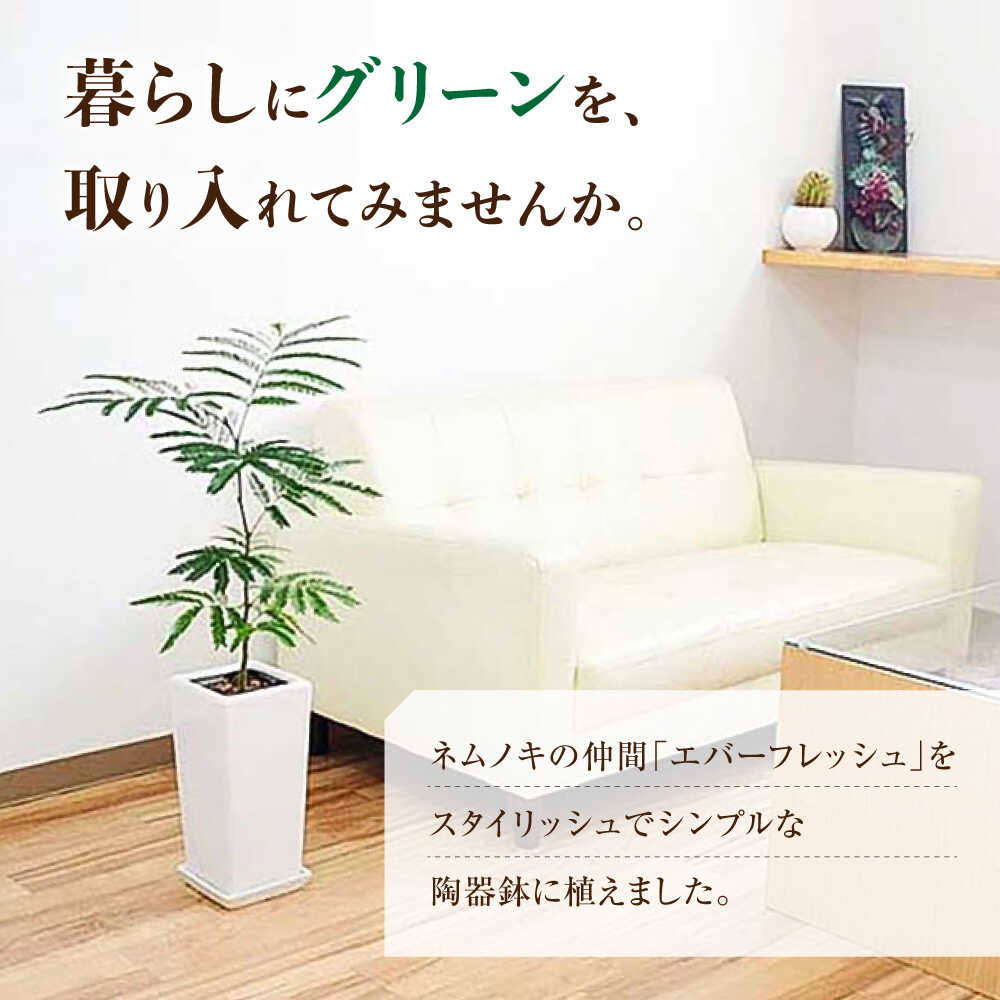 - 【ふるさと納税】観葉植物 エバーフレッシュ ネムノキ スクエア陶器鉢植え 6号/観葉 鉢 植物 インテリア おしゃれ プレゼント/大村市/琴花園[ACYK038]