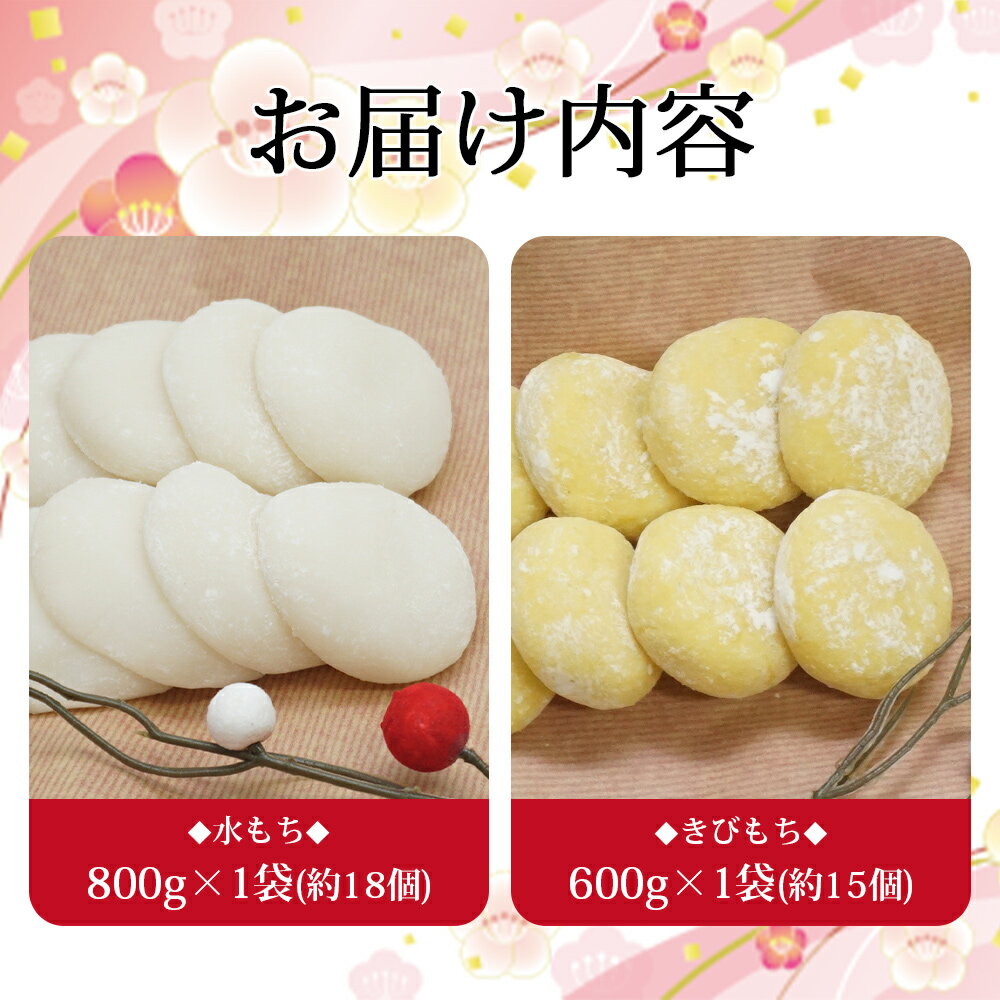 - 【ふるさと納税】<保存料無添加 水もち(800g)ときびもち(600g)のセット (約33個) 1.4kgセット> ※翌月末迄に順次出荷します。 餅 モチ 雑煮 御祝い お祝い 特別な日 和菓子 和スイーツ おやつ ヒヨクモチ 正月 うちぬき水 おおさかや蔵はち 愛媛県 西条市 【常温】
