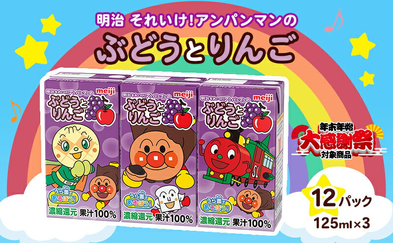 - 【ふるさと納税】【年末年始大感謝キャンペーン】明治それいけ!アンパンマンのぶどうとりんご 125ml×3 12パック【アンパンマン 飲み物 果汁ジュース 子ども キッズ ミックスジュース】