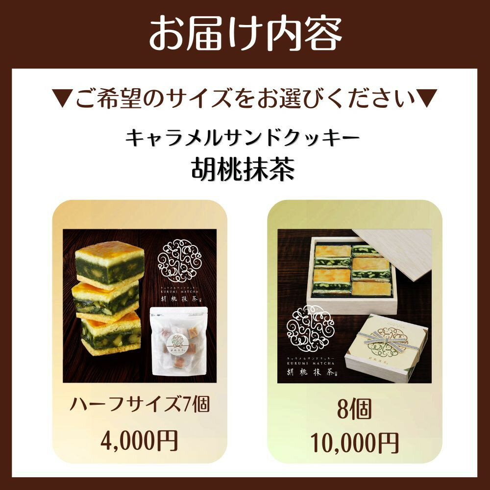 - 【ふるさと納税】【吟匠庵】キャラメルサンドクッキー 胡桃抹茶 8個・ハーフサイズ7個|京都 スイーツブランド 人気スイーツ 便利な個包装 | 焼き菓子 洋菓子 抹茶スイーツ 抹茶 キャラメル 胡桃 一口サイズ 個包装 おいしい グルメ 人気 おすすめ ギフト プレゼント
