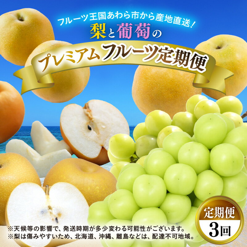 - 【ふるさと納税】《先行予約》福井県産 フルーツ 定期便 3回(幸水梨 シャイン マスカット 新興梨)果物 大玉 梨 ブドウ 大粒 種無し 皮ごと 新鮮 朝どれ もぎたて 美味しい 樹上 完熟 プレミアム お取り寄せ ※2026年8月中旬頃より順次発送