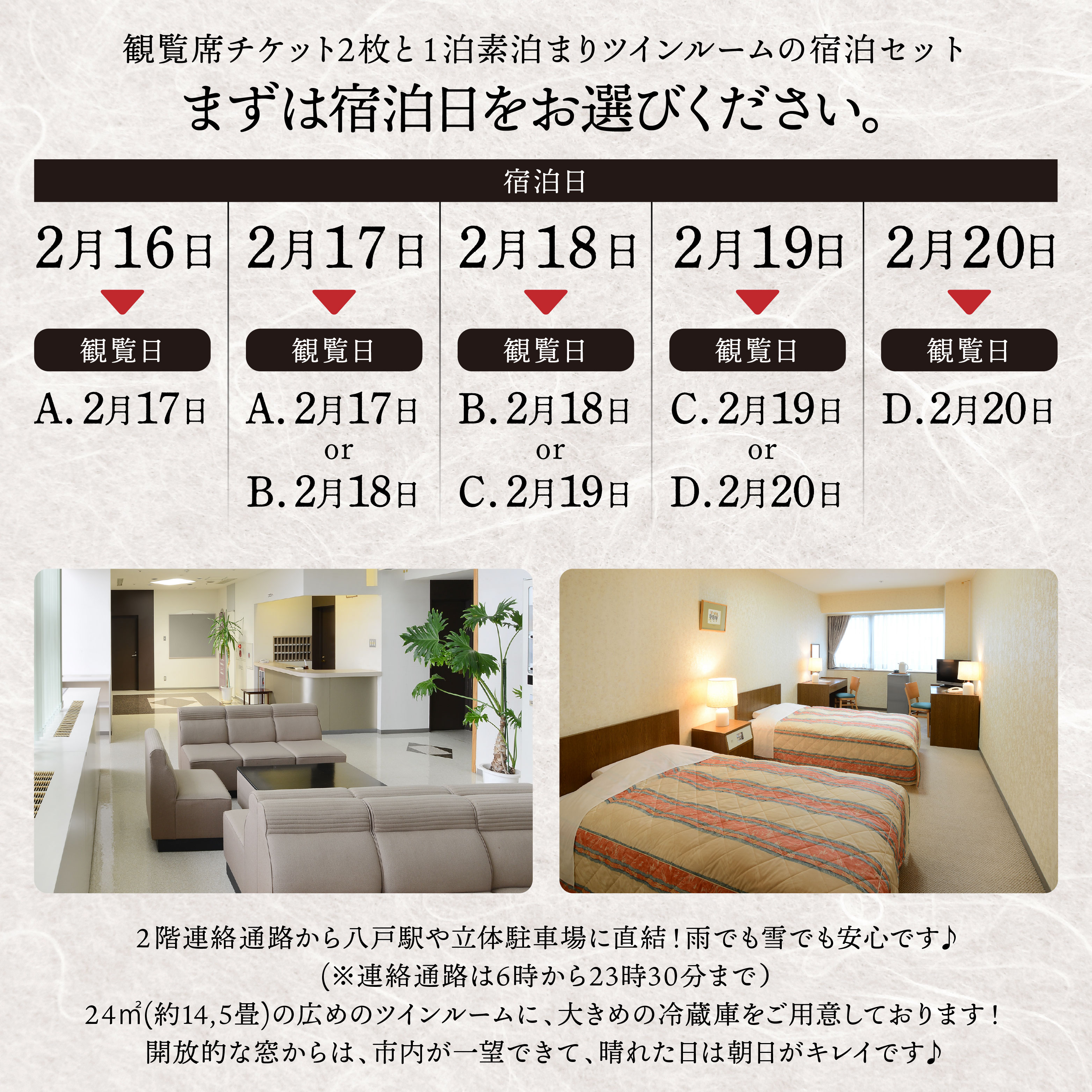 - 【ふるさと納税】【宿泊セット】お庭えんぶり観覧席 ペア(1泊素泊まり宿泊セット×ツイン1部屋)お土産付き 郷土芸能 八戸えんぶり えんぶり 重要無形民俗文化財 青森県 八戸市