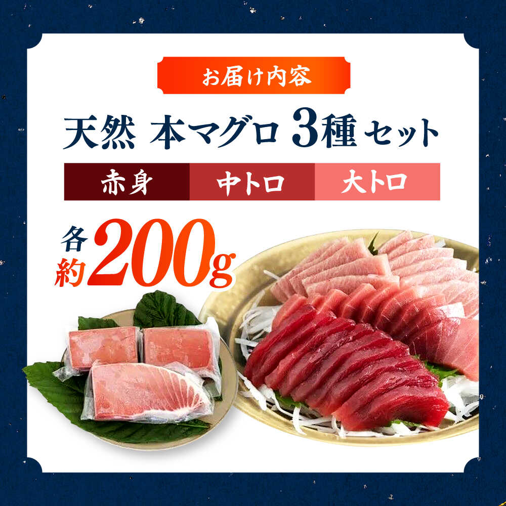- 【ふるさと納税】天然本鮪 大トロ 中トロ 赤身 セット(各約200g) / 高知 魚介 海鮮 鮮魚 魚 マグロ まぐろ 鮪 本鮪 新鮮 天然 刺身 寿司 セット 【株式会社Dorago】[ATAM055]