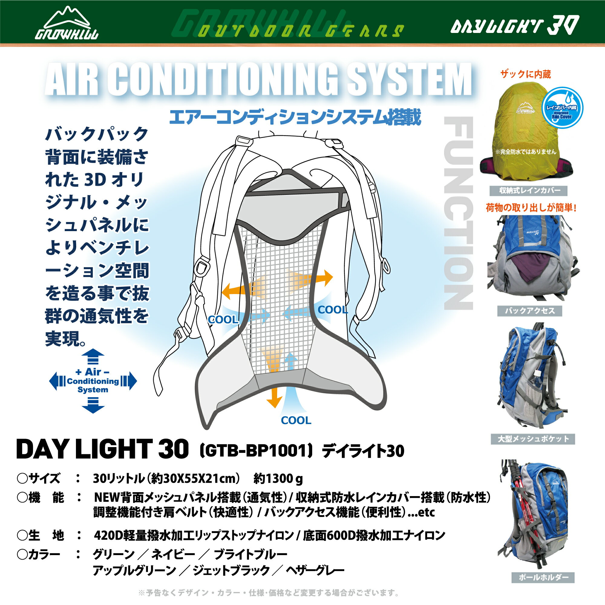 【ふるさと納税】GROWHILL リュックサック デイライト30 アップルグリーン / ジェイクリエイト ハイキング トレッキング 登山 鞄 アウトドア バックパック 奈良県 田原本町