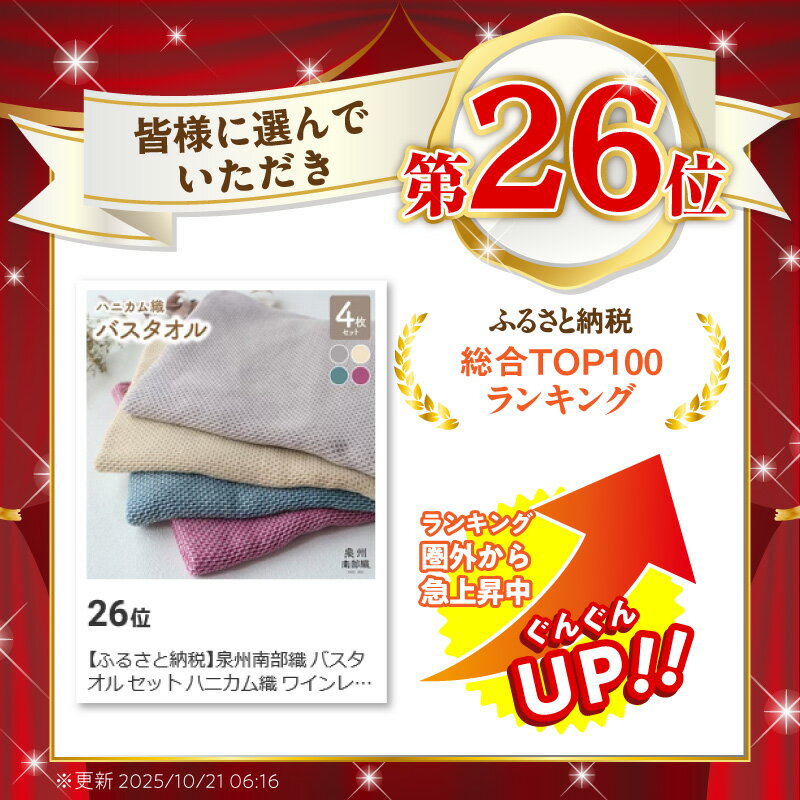 - 【ふるさと納税】泉州南部織 バスタオル セット ハニカム織 ワインレッド ブルーグリーン ベージュ グレー 各1枚 合計4枚 日本製 無地 綿100% 薄手 吸水性 速乾性 ワッフル 速乾 ふわふわ ふかふか 柔らかい 吸水力 泉佐野市 送料無料