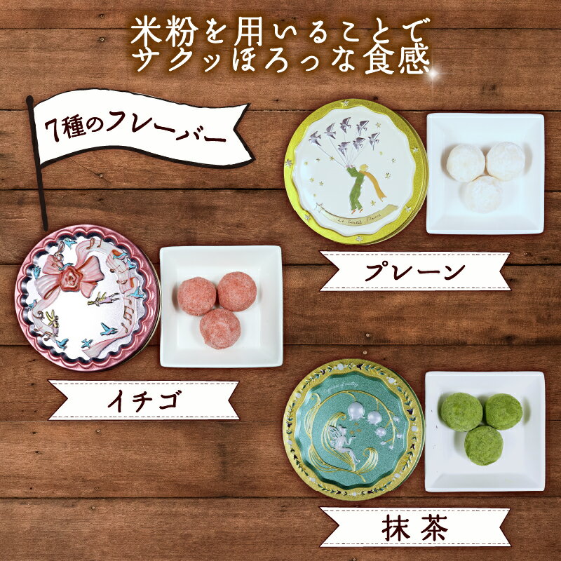 - 【ふるさと納税】 米粉 クッキー 7缶セット ブールドネージュ クッキー 米粉 グルテンフリー 菓子 洋菓子 おやつ 近江ほろり プレーン 抹茶 まっちゃ いちご イチゴ ココア きなこ レモン れもん 和三盆 スイーツ デザイン缶 セット ギフト 贈答 プレゼント 贈り物 滋賀 彦根