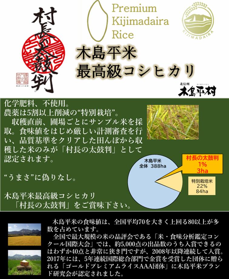 【ふるさと納税】 最高級米コシヒカリ「村長の太鼓判」 1.5kg、5kg、10kg 選べます(木島平村農業振興公社) | 米 お米 コメ ライス 白米 精米 長野県産 木島平村産 最高級米 コシヒカリ 減農薬 無化学肥料 村長の太鼓判 1.5kg、5kg、10kg 選べる 木島平村 長野県 信州