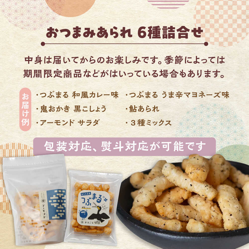 - 【ふるさと納税】あられ \厳選!お酒のつまみにも/ あられ6種詰め合わせ セット おかき お菓子 おやつ 米菓 せんべい 煎餅 和菓子 詰め合わせ 詰合せ バラエティ 個包装 小分け シェア お茶請け おつまみ 辛い ピリ辛 ギフト 人気 岐阜市 / 丸幸製菓[ANGG005]