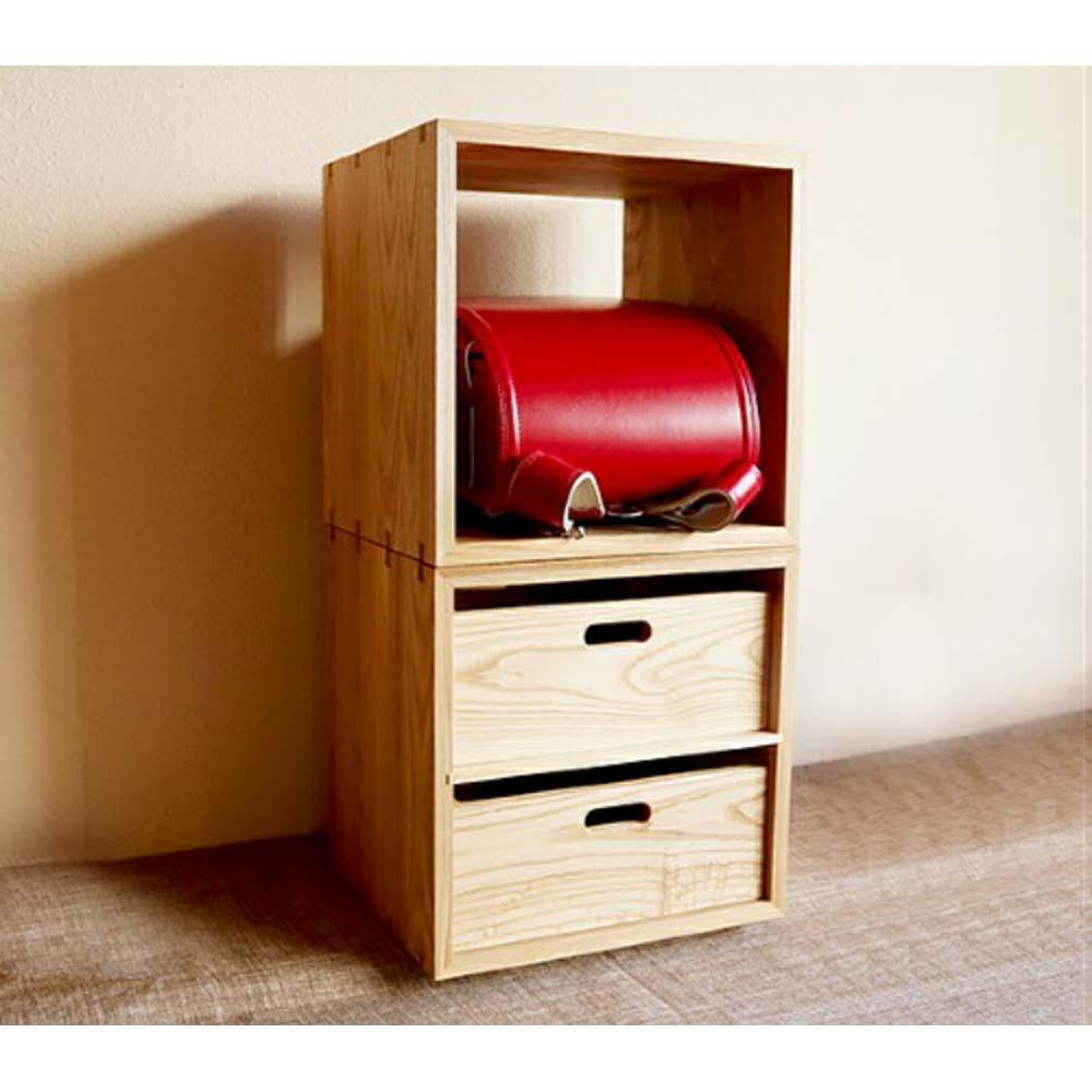 - 家具 KOBAKO ユニット飛騨の家具 国産材 収納棚 ニレ材 オープン 2段 組合せ スタッキング 引き出し シンプル 無垢 ランドセル 小学生 子ども部屋 子供部屋【オークヴィレッジ】TR4041 1