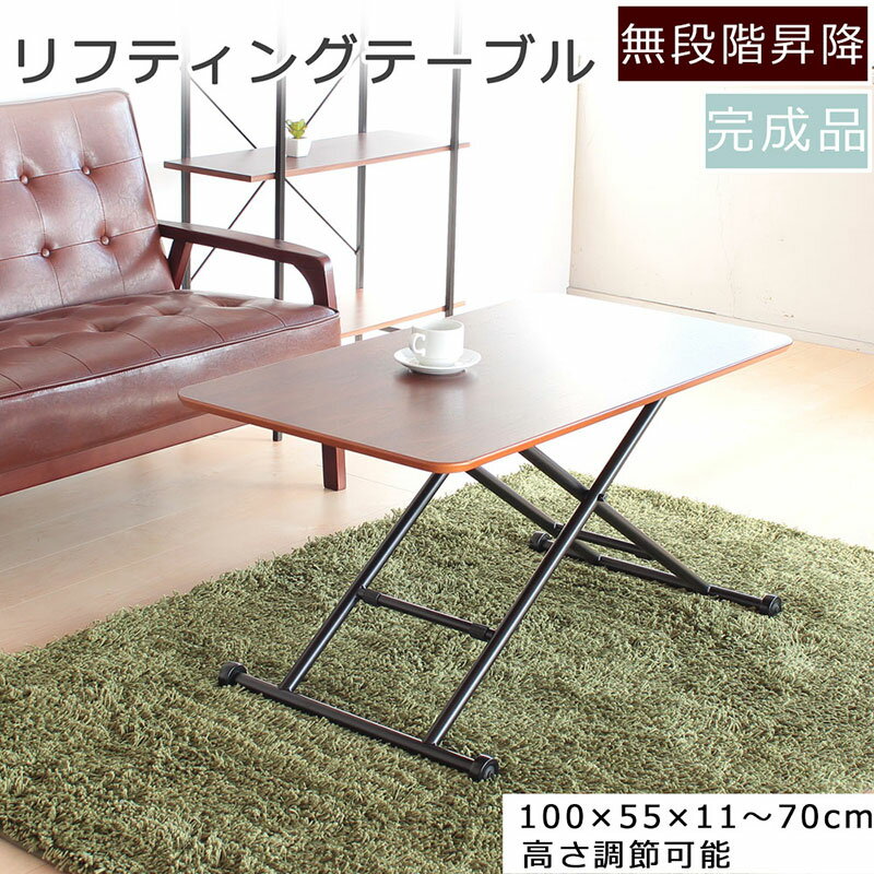 - 【ふるさと納税】リフティングテーブル ウオールナット 突板 100cm幅 昇降デスク 無段階 高さ調節 机 おしゃれ インテリア キャスター付 折りたたみ