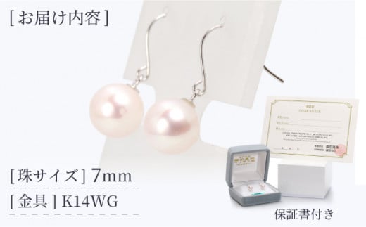 【真珠生産量全国1位の長崎からお届け!】 あこや真珠 (7mm珠)フックピアス K14WG / パール 真珠 アクセサリー ジュエリー フック ピアス ホワイト ゴールド K14 ギフト 贈り物 プレゼント バレンタインデー ホワイトデー 入学式 卒業式 結婚式 冠婚葬祭 誕生日 【園田真珠】 [RBB007]