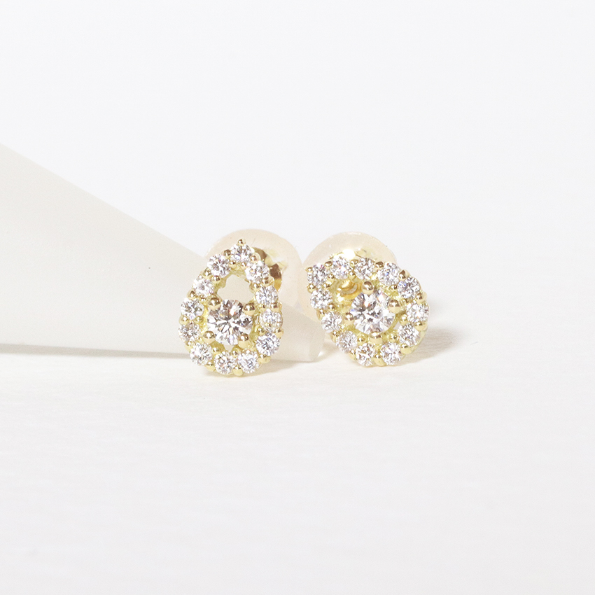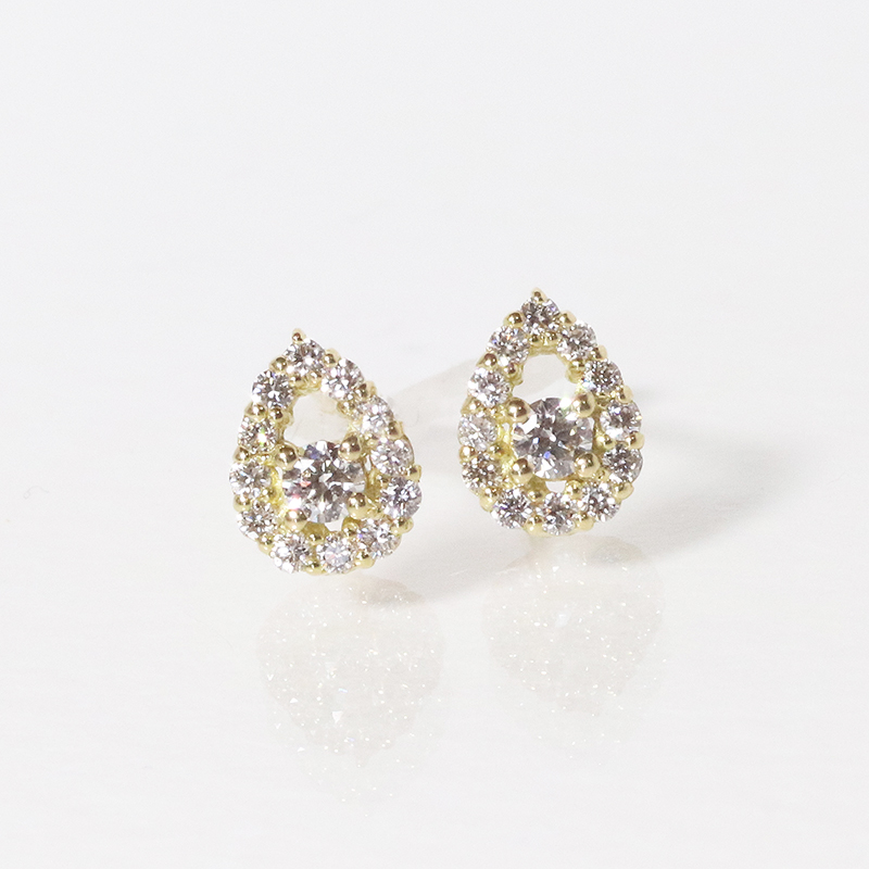 K18 しずく取り巻きダイヤモンドピアス 0.20ct BQ-85