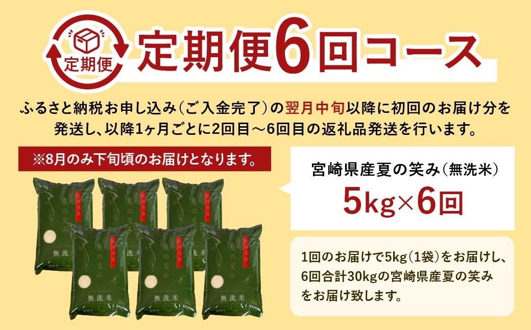 - 【学校給食提供】<令和7年産 宮崎県産夏の笑み(無洗米)5kg 6か月定期便> お申込みの翌月下旬に第1回目を発送 米 希少品種