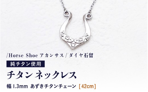 天然 ダイヤ 0.014ct チタンネックレス/Horse Shoeアカンサス/ダイヤ石留 【チェーンの長さ:42cm】 幅1.3mmあずきチタンチェーン チタン製 日本製 【ネックレス チタンチェーン ダイヤモンド オールチタン 純チタン アクセサリー おしゃれ 軽量】 [M-20302_01]