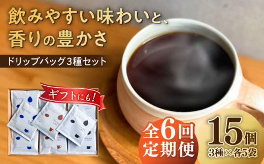 【6回定期便】コーヒー ドリップバッグ コーヒー3種のブレンド 15個入り (かろやか、あじわい、ふかみ) 珈琲 ドリップ 焙煎 おすすめ 人気 ギフト セット プレゼント 贈り物 贈答 お返し 内祝い お祝い お中元 お歳暮 母の日 父の日 敬老の日 手土産 自家焙煎 スペシャルティコーヒー 高品質 飲み比べ アソート 定期便 サブスク 岐阜市 / cafe旅人の木 [ANGI003]
